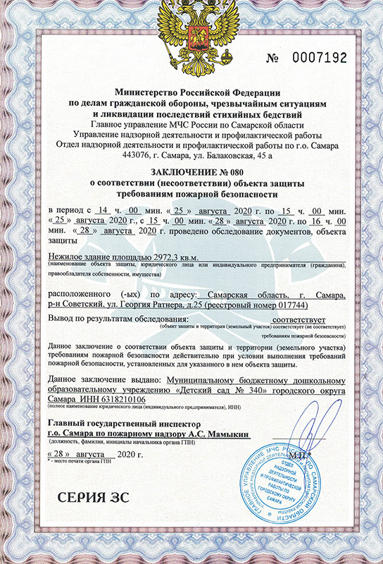 Заключение о соответствии объекта требованиям пожарной безопасности