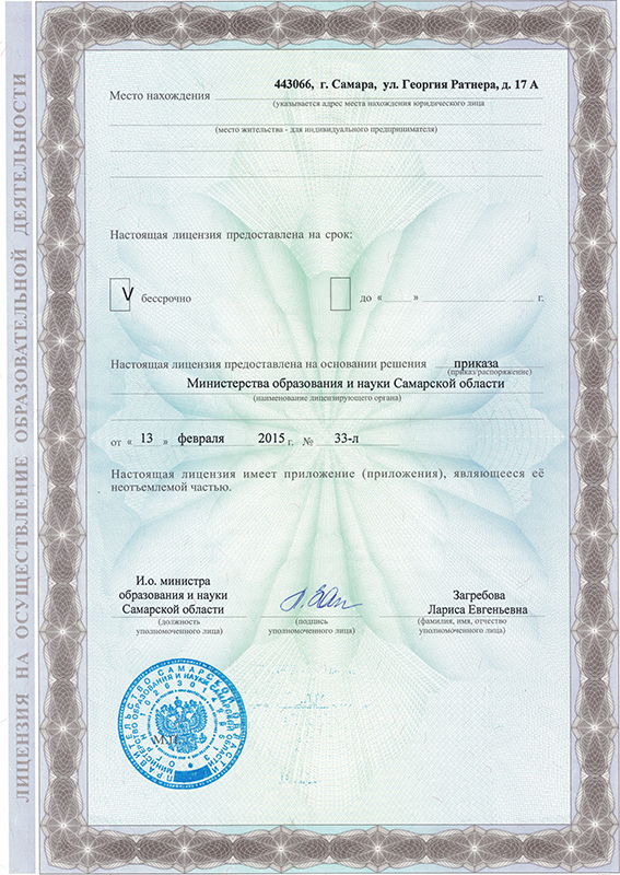 Лицензия на осуществление образовательной деятельности