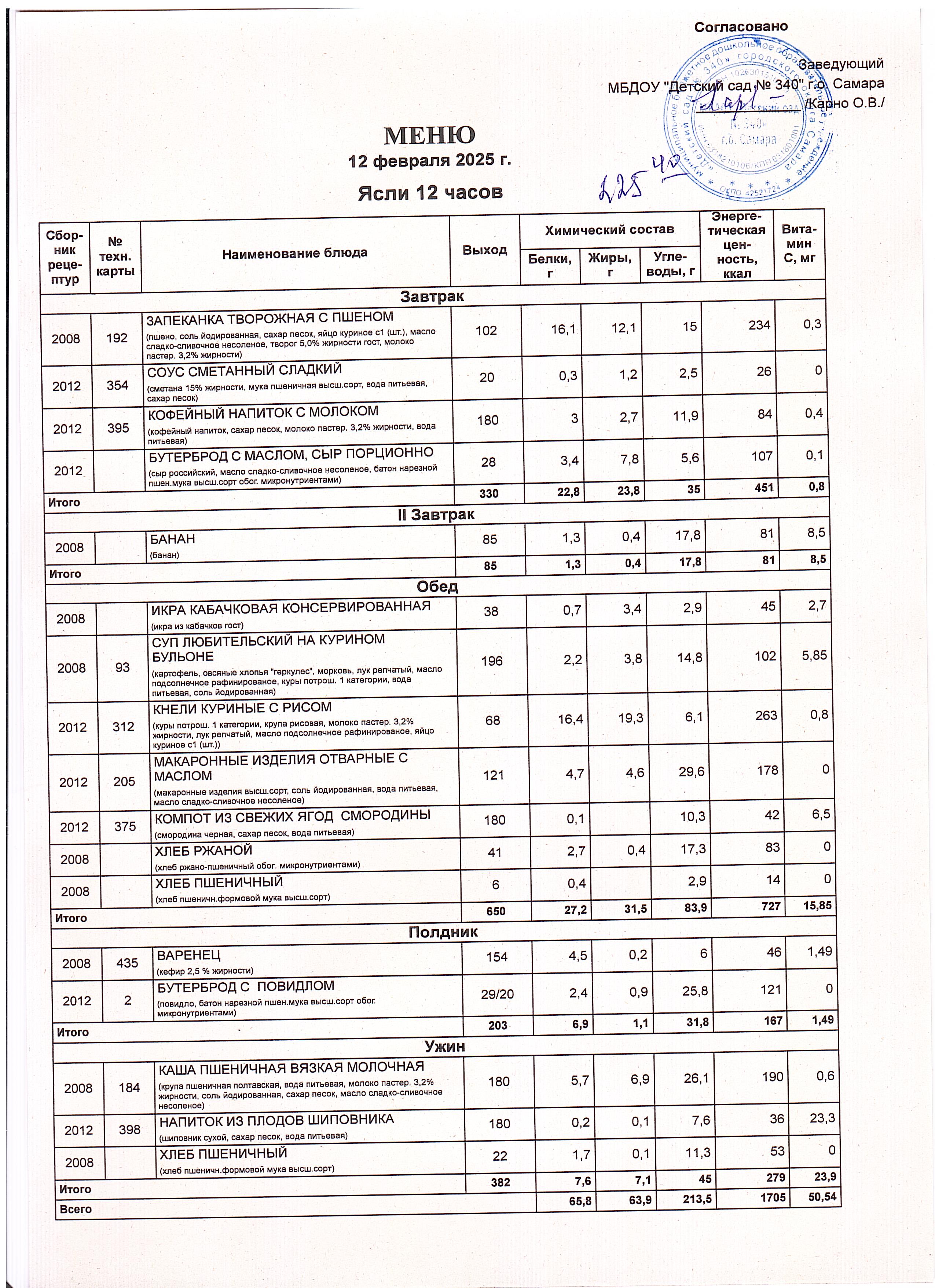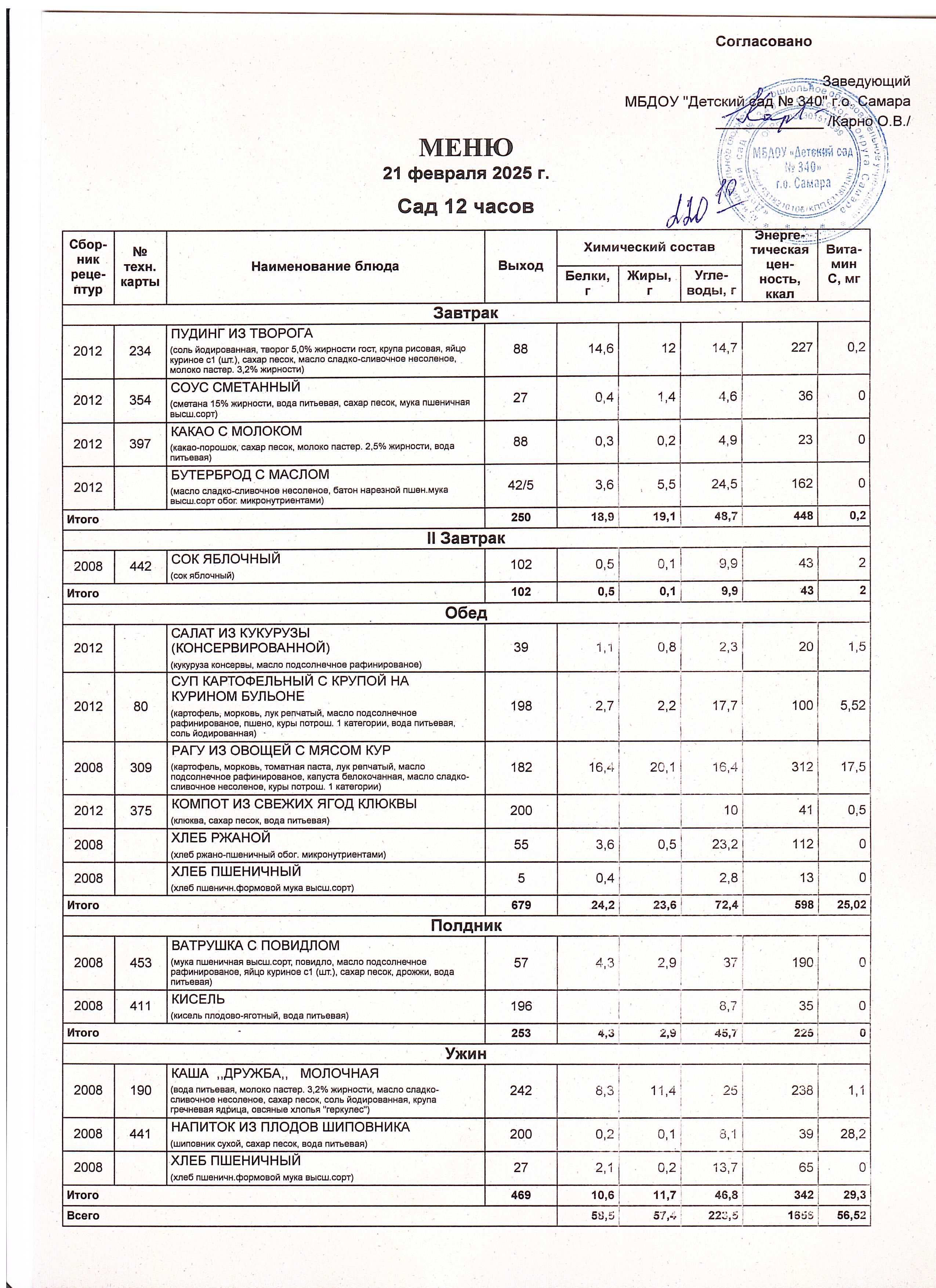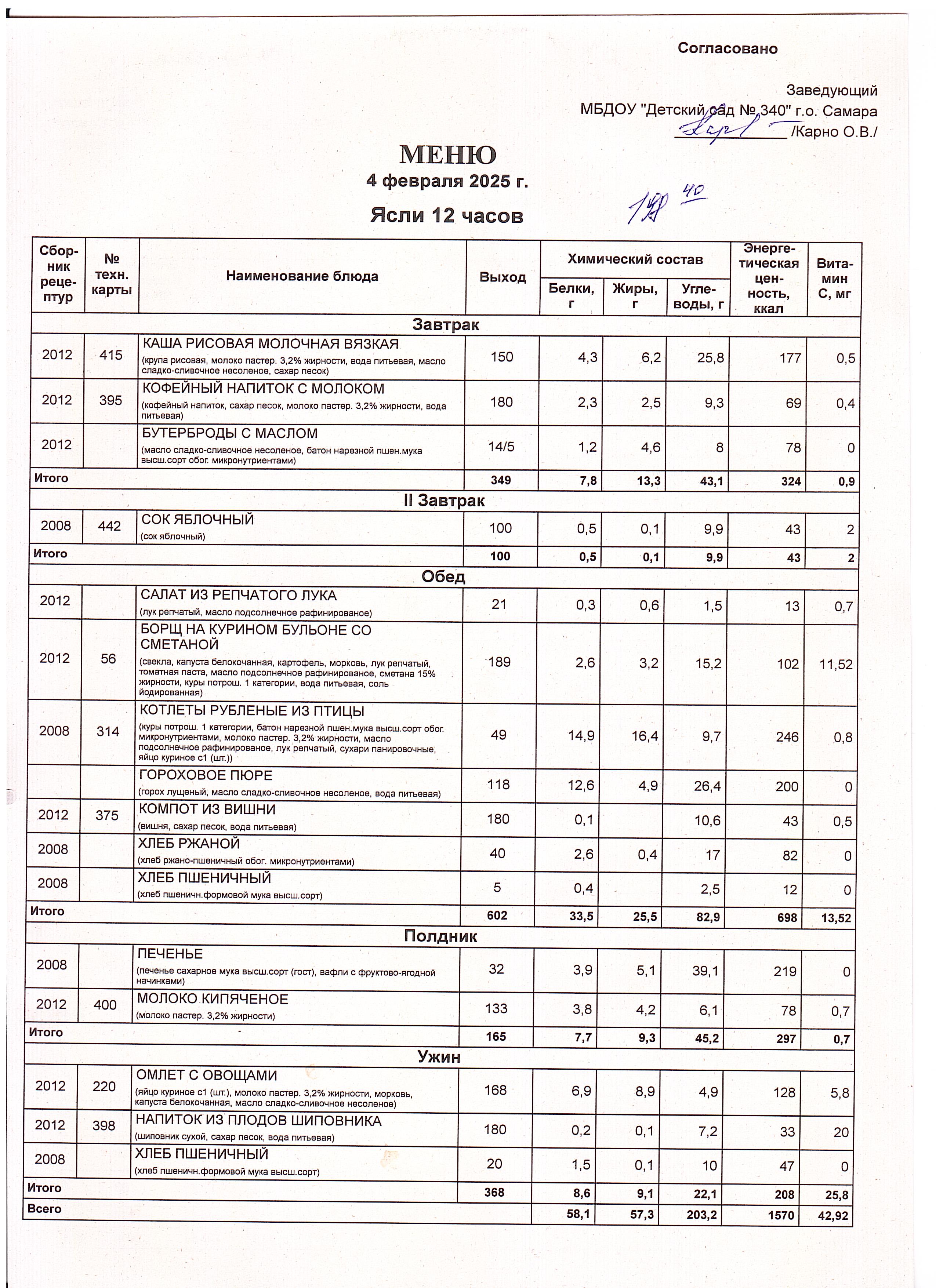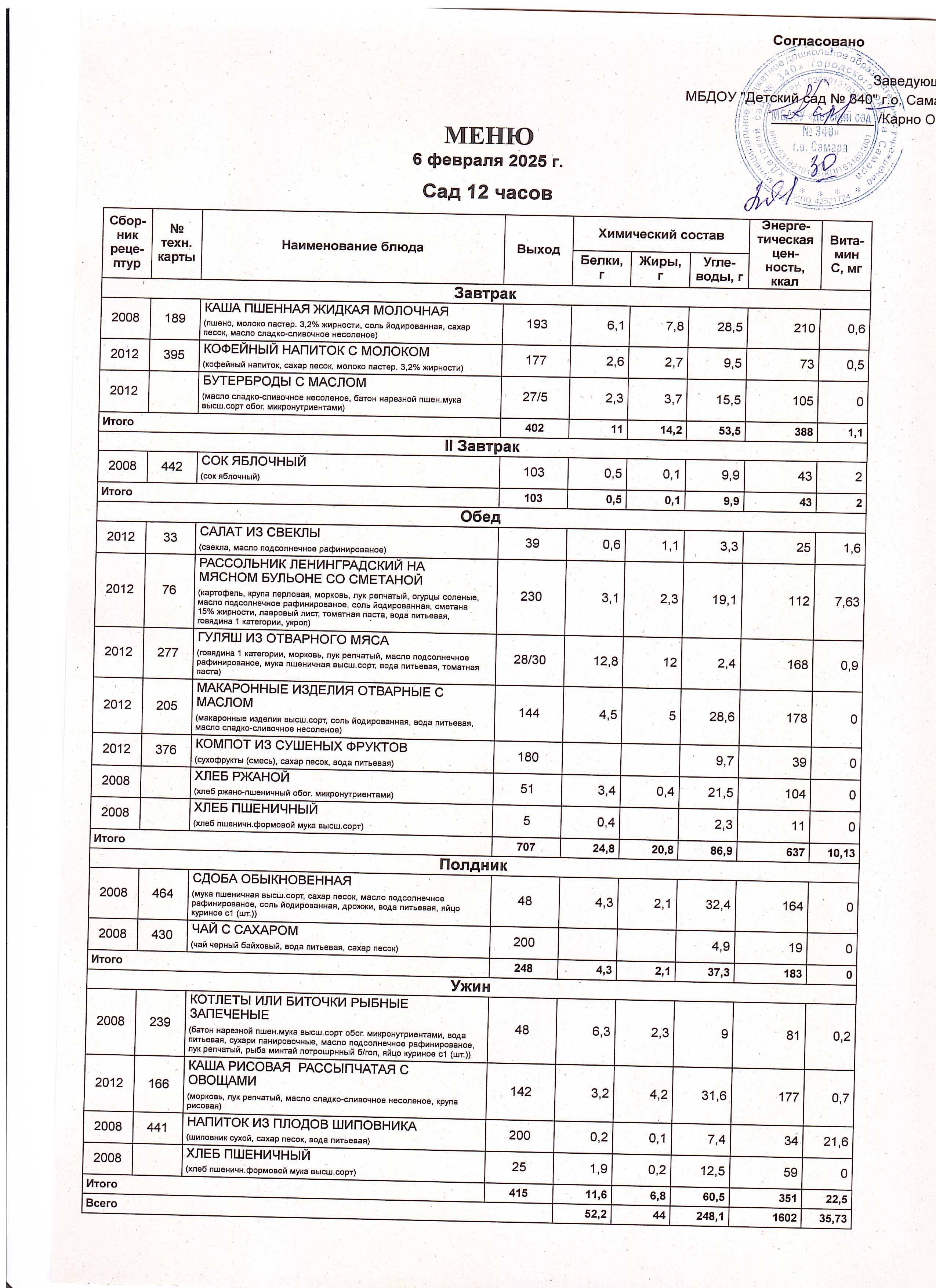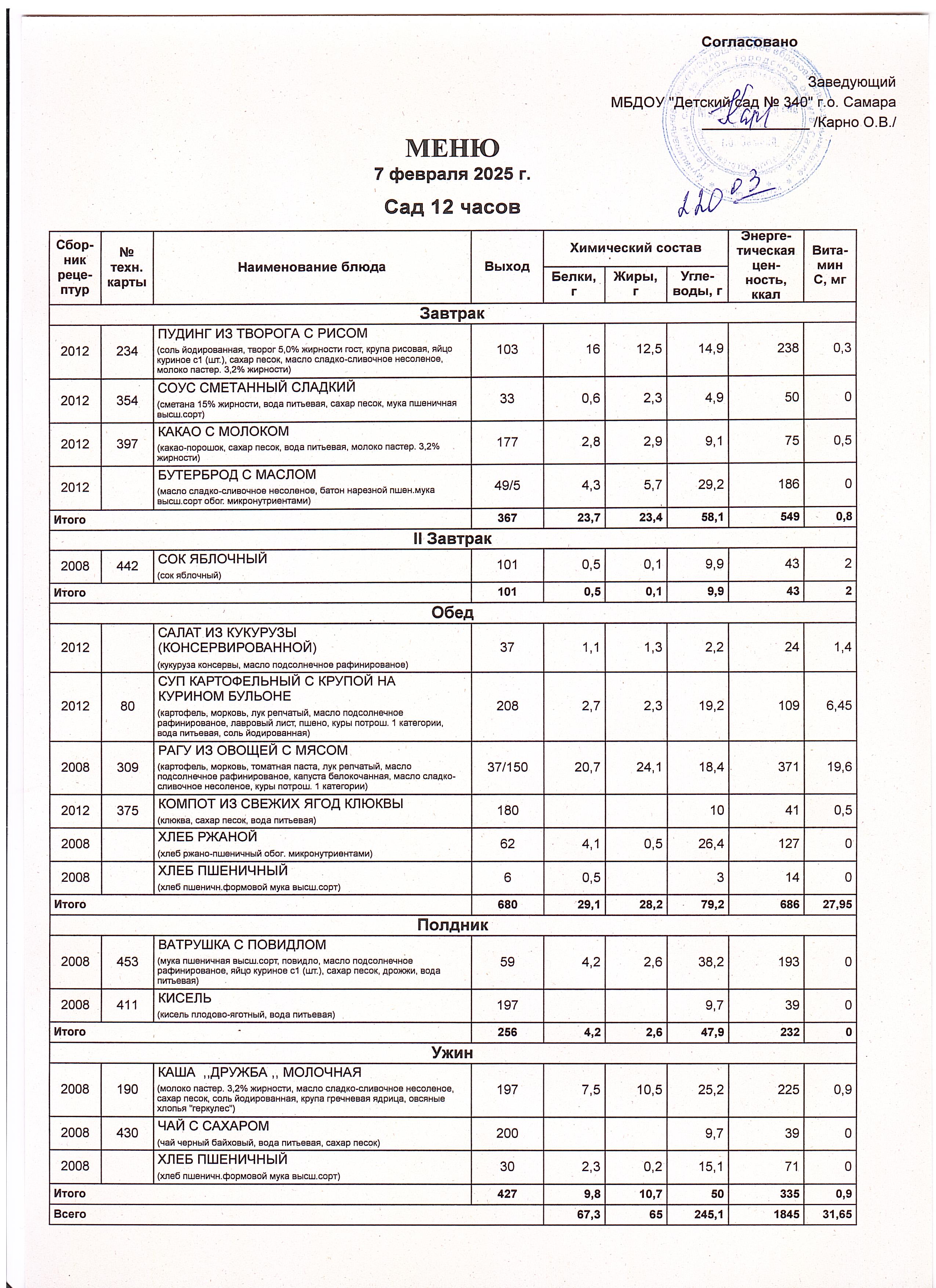 Актуальное утвержденное меню