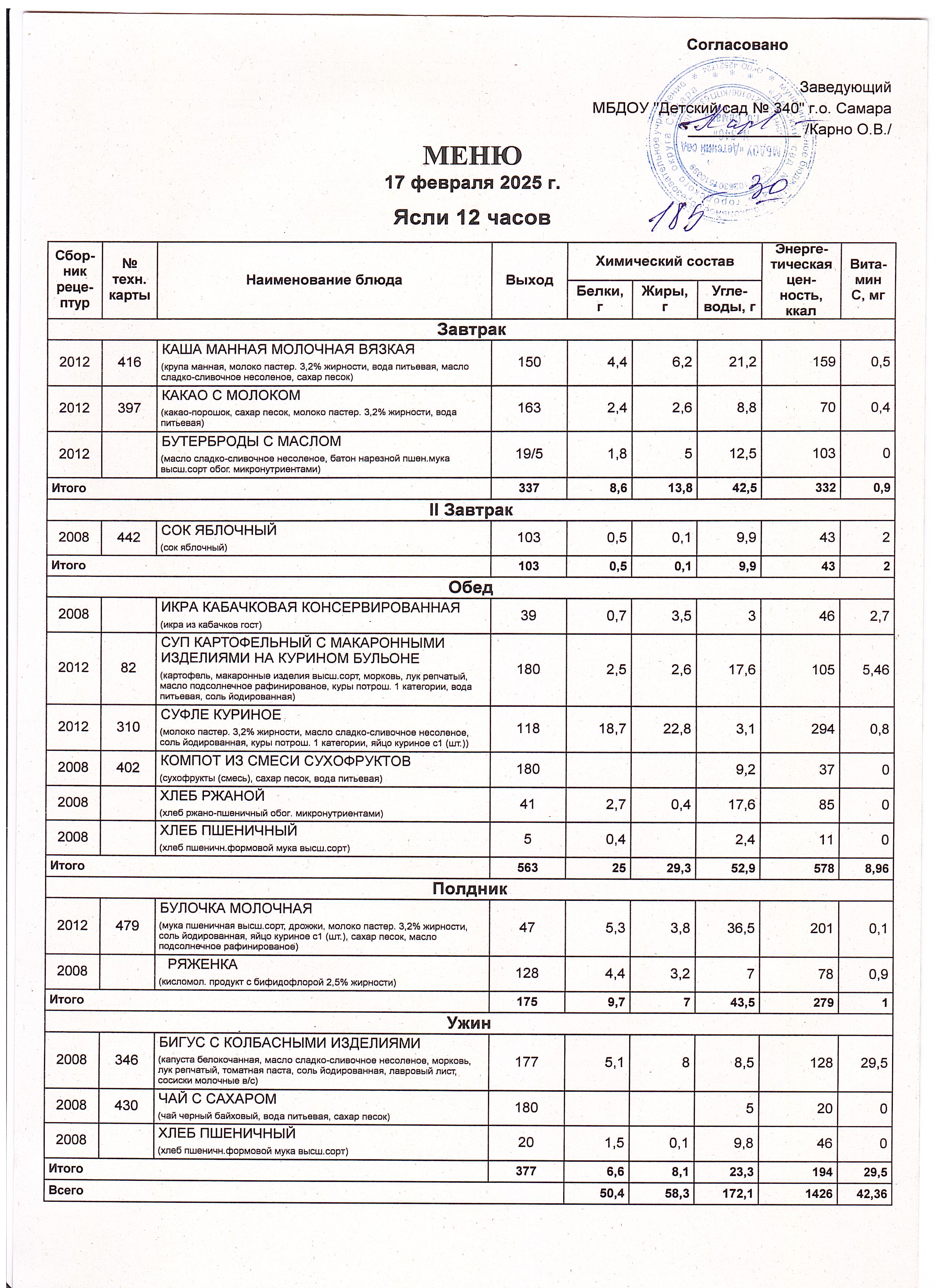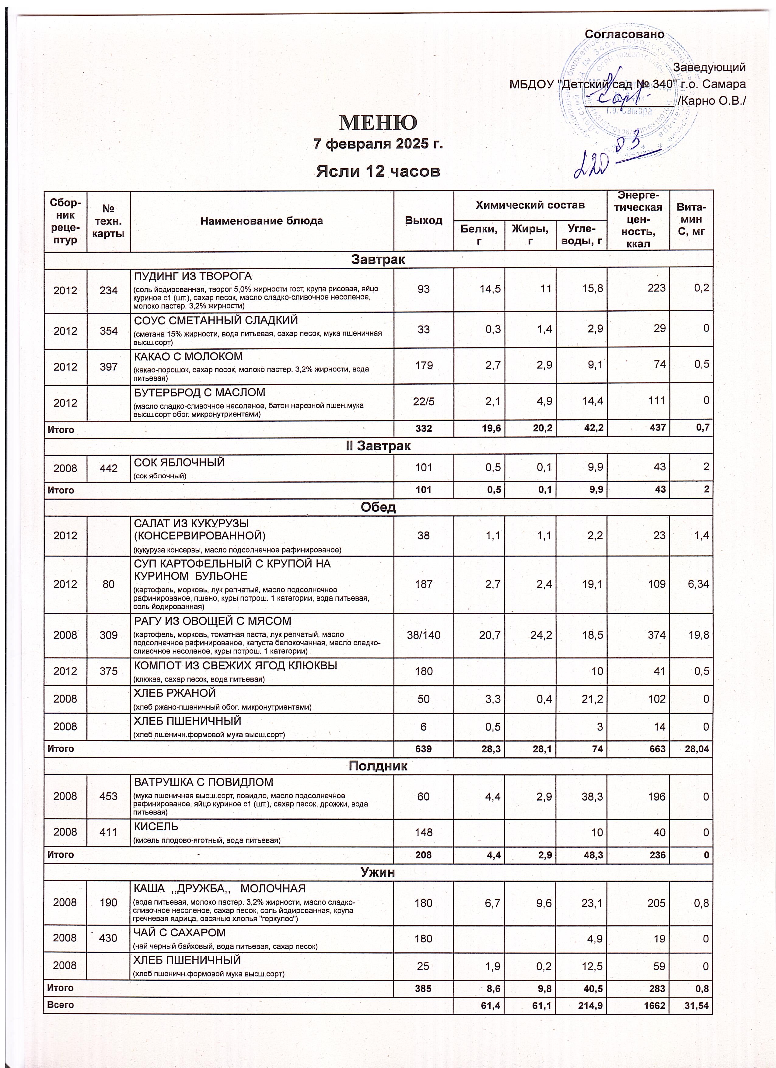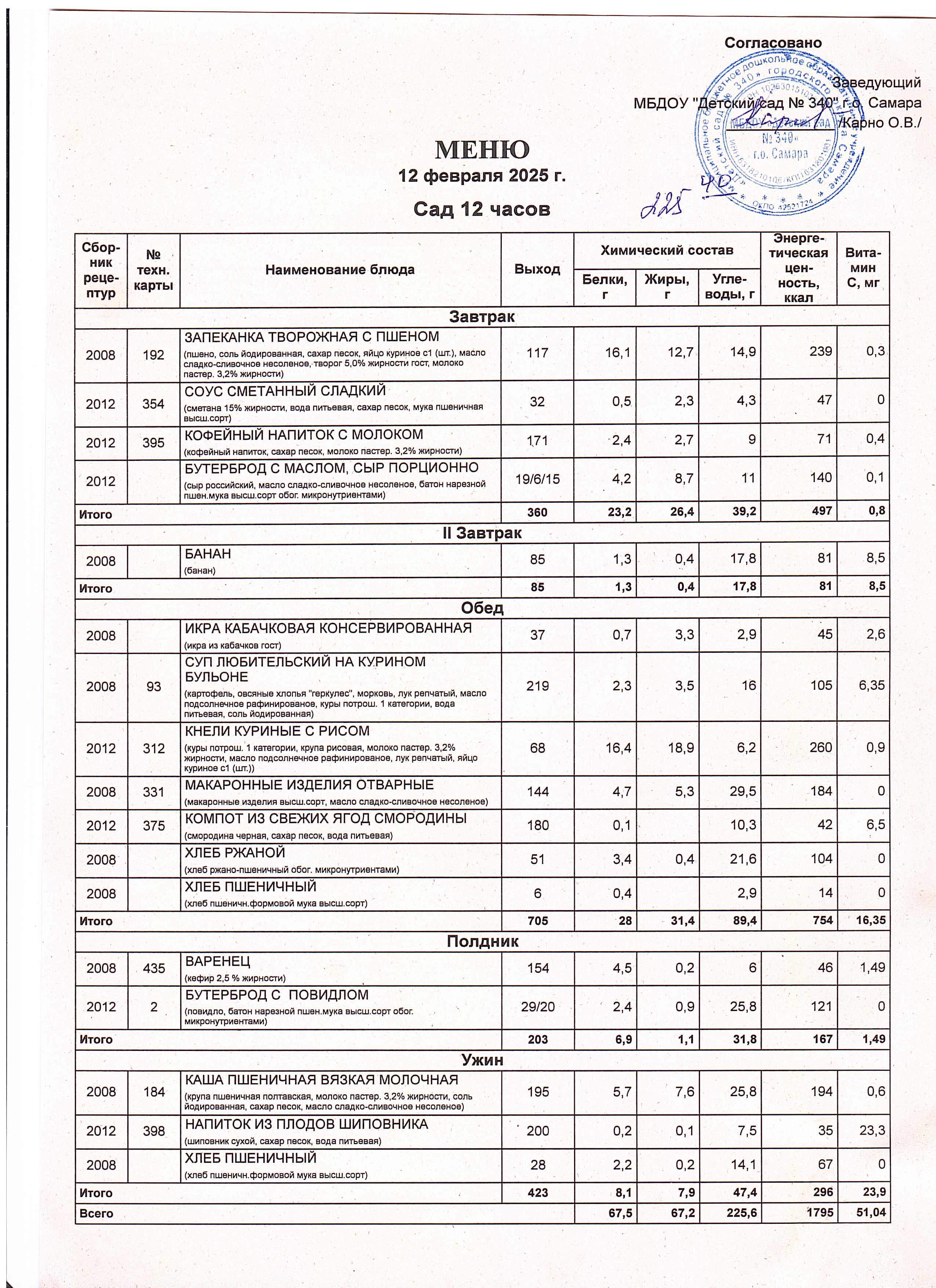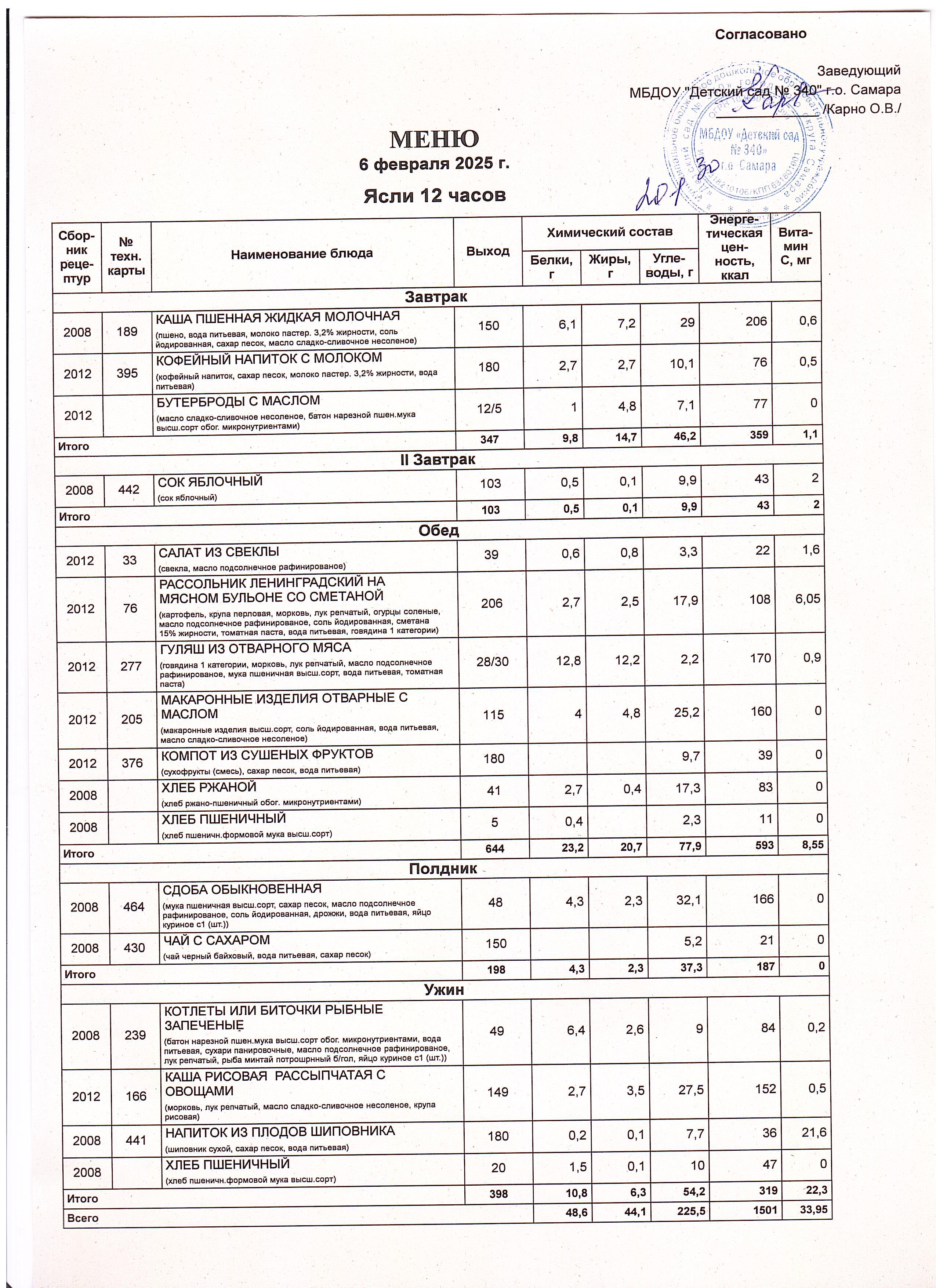 Актуальное утвержденное меню