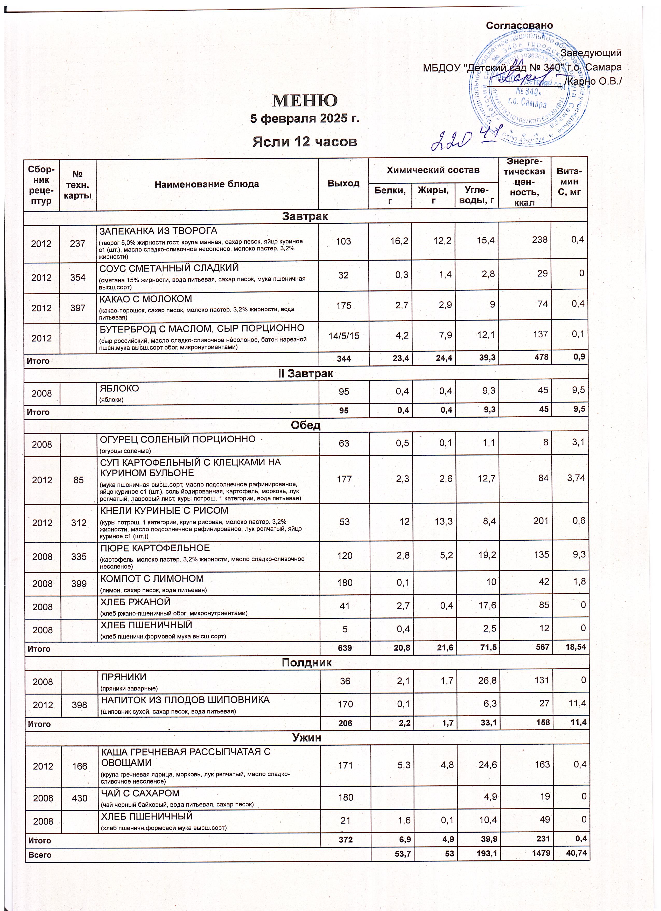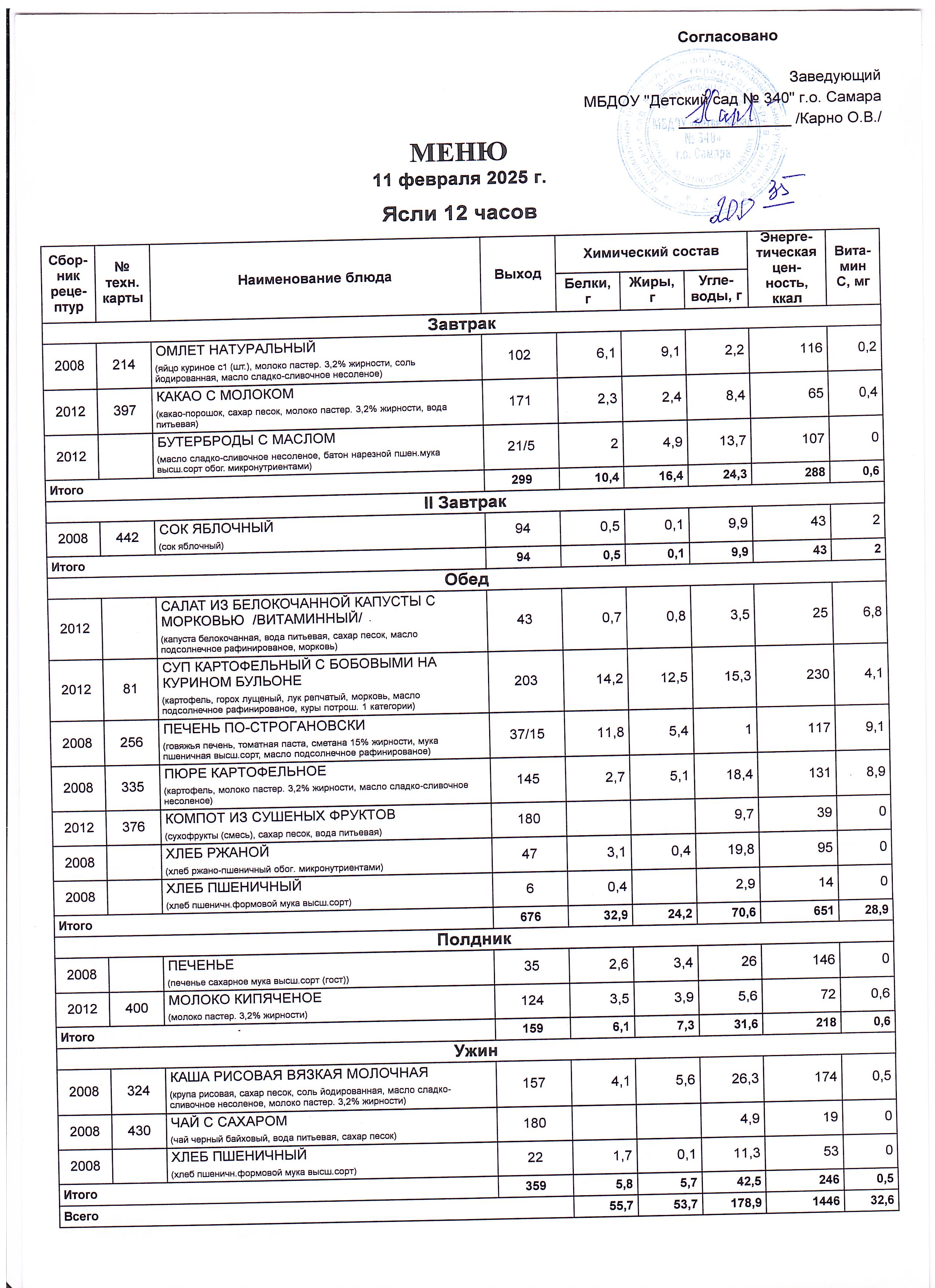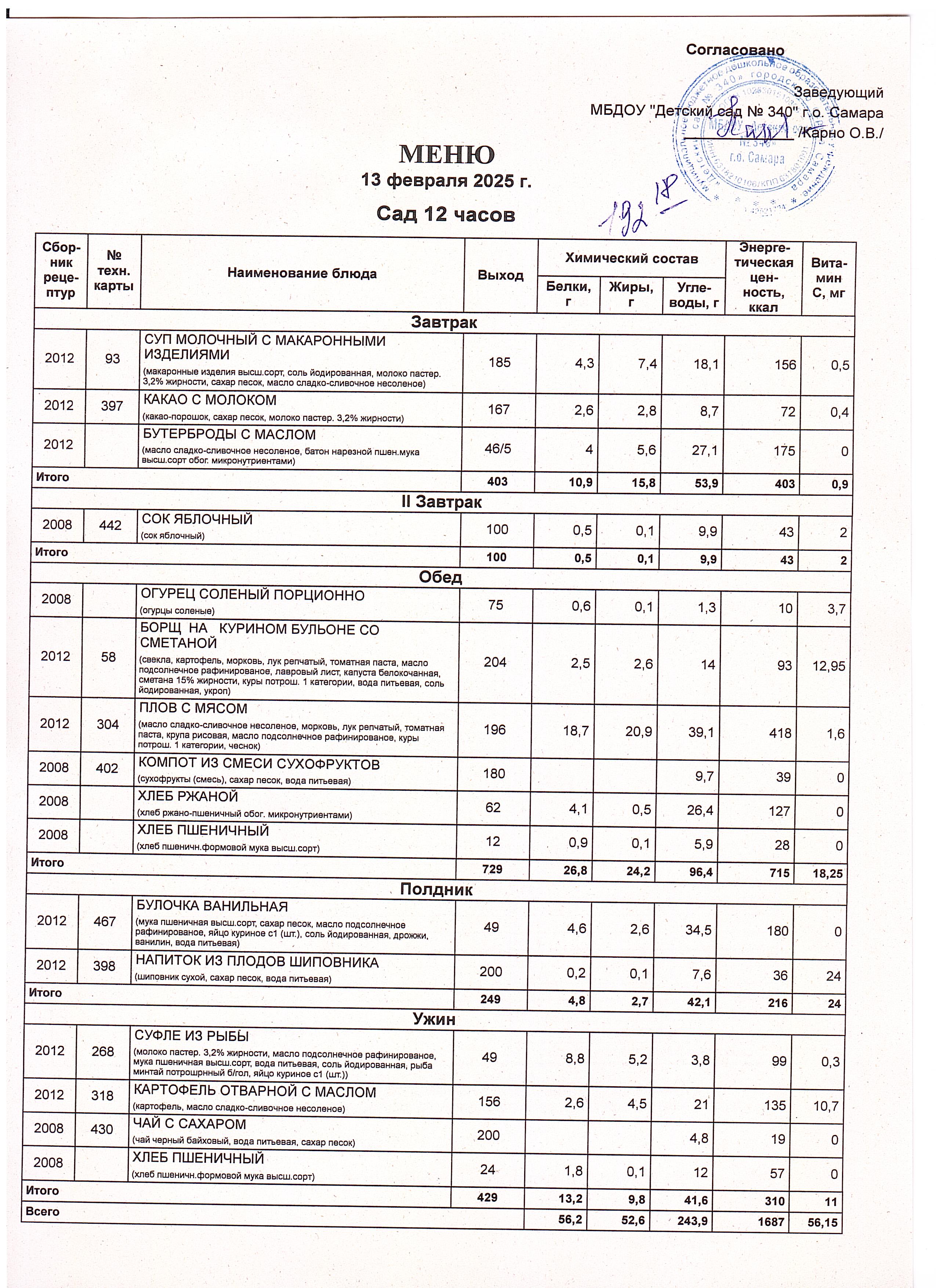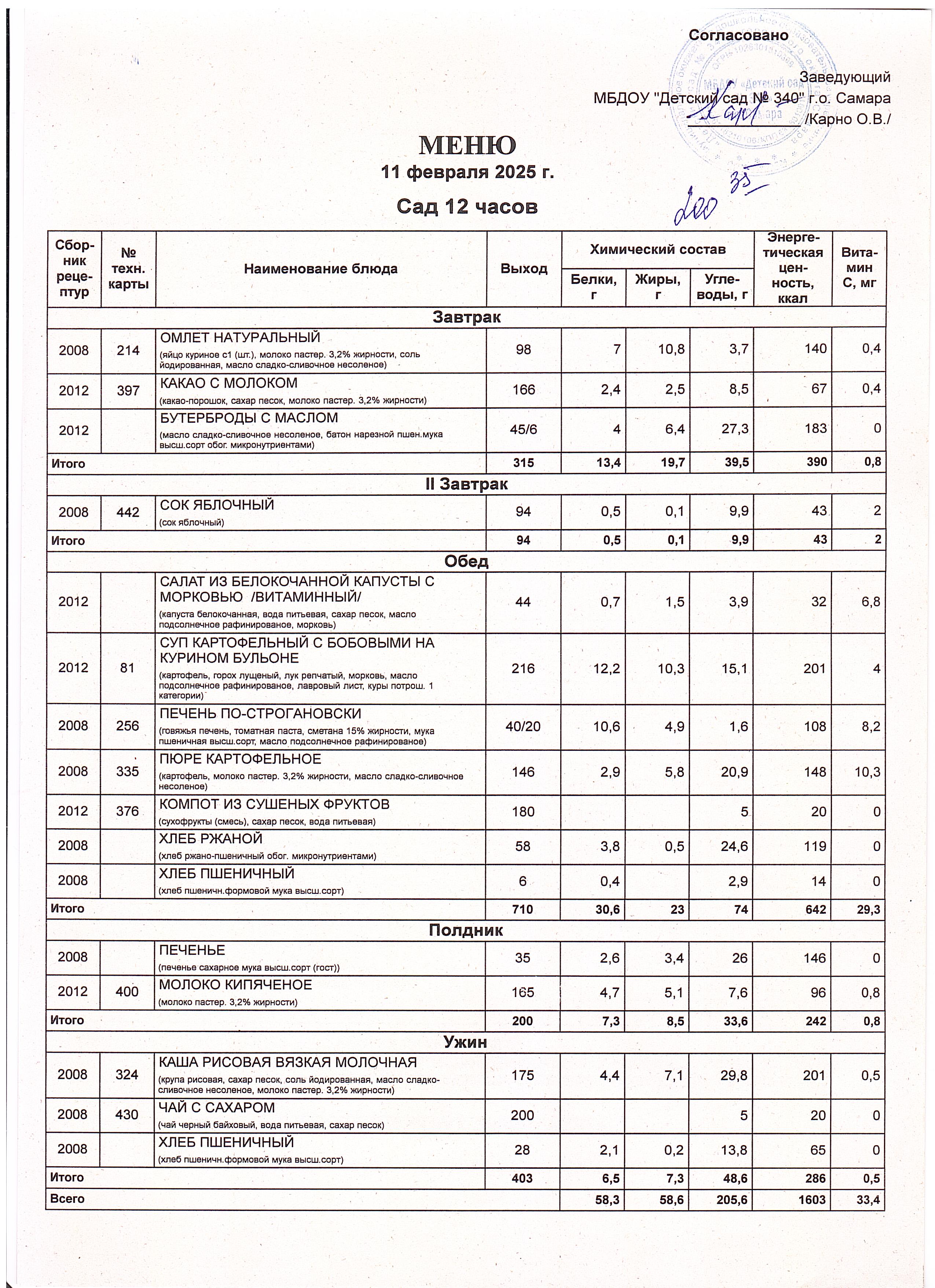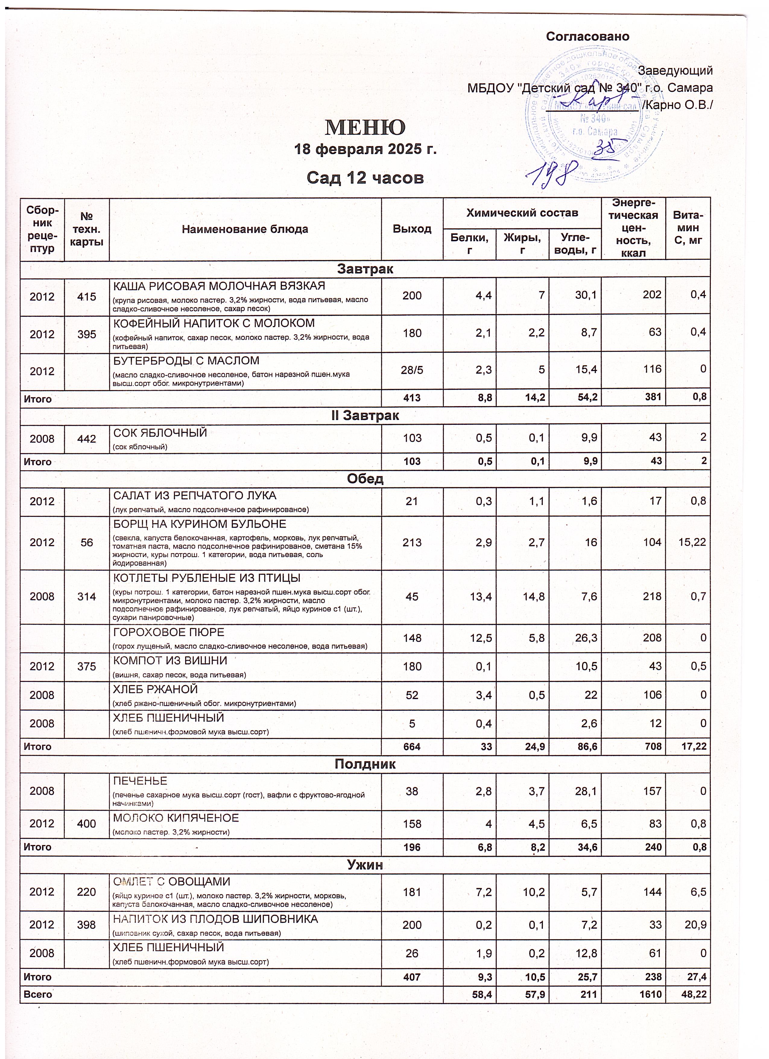 Актуальное утвержденное меню