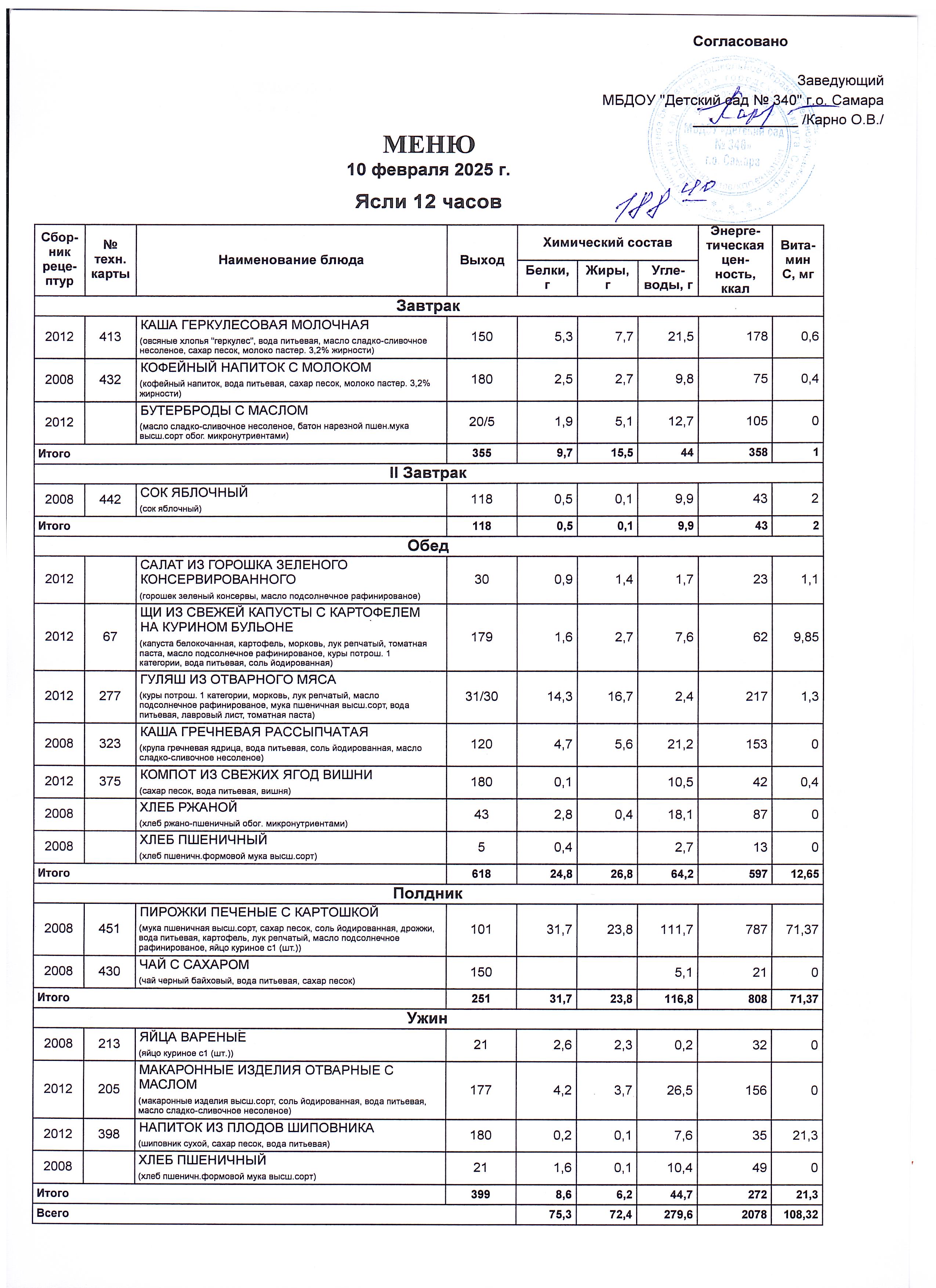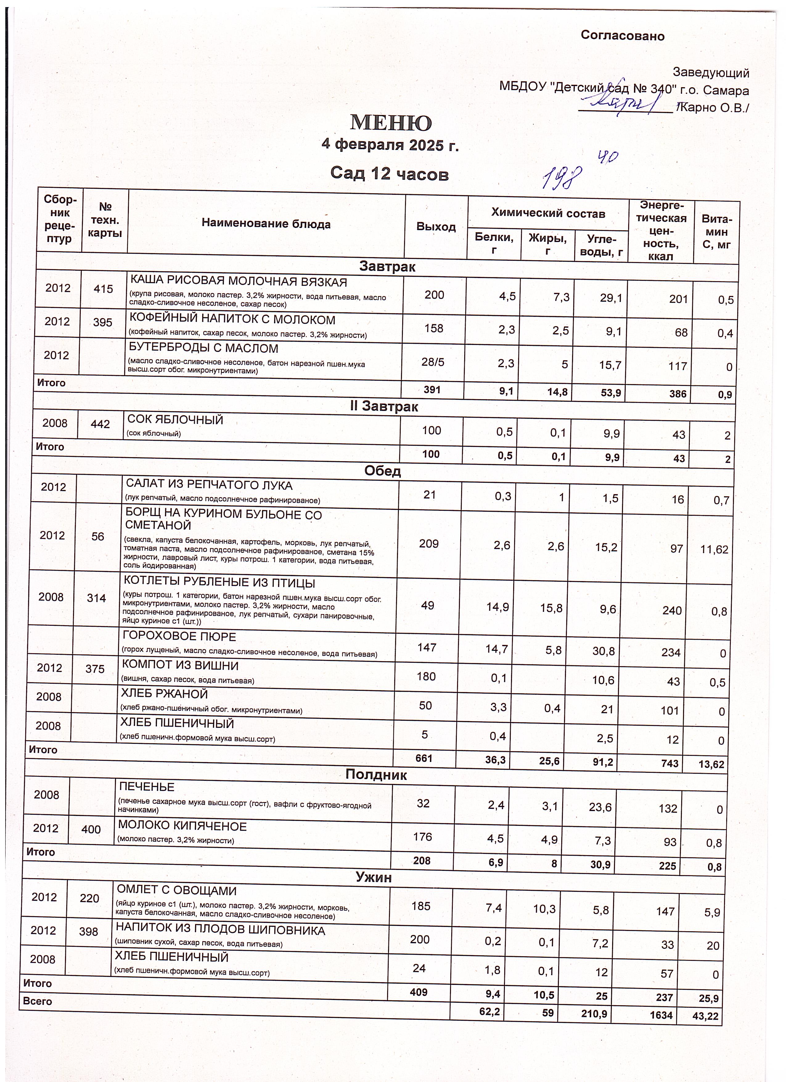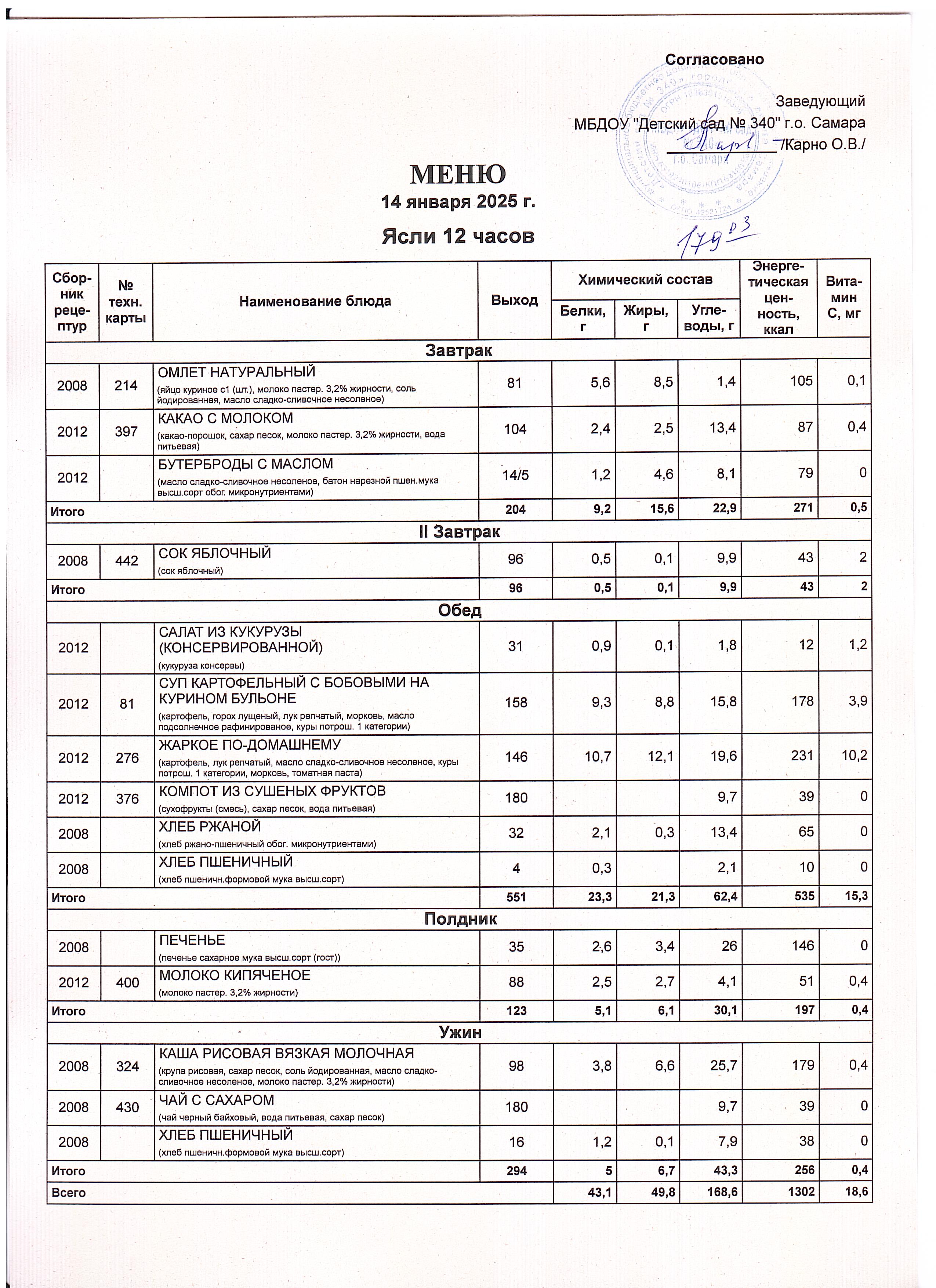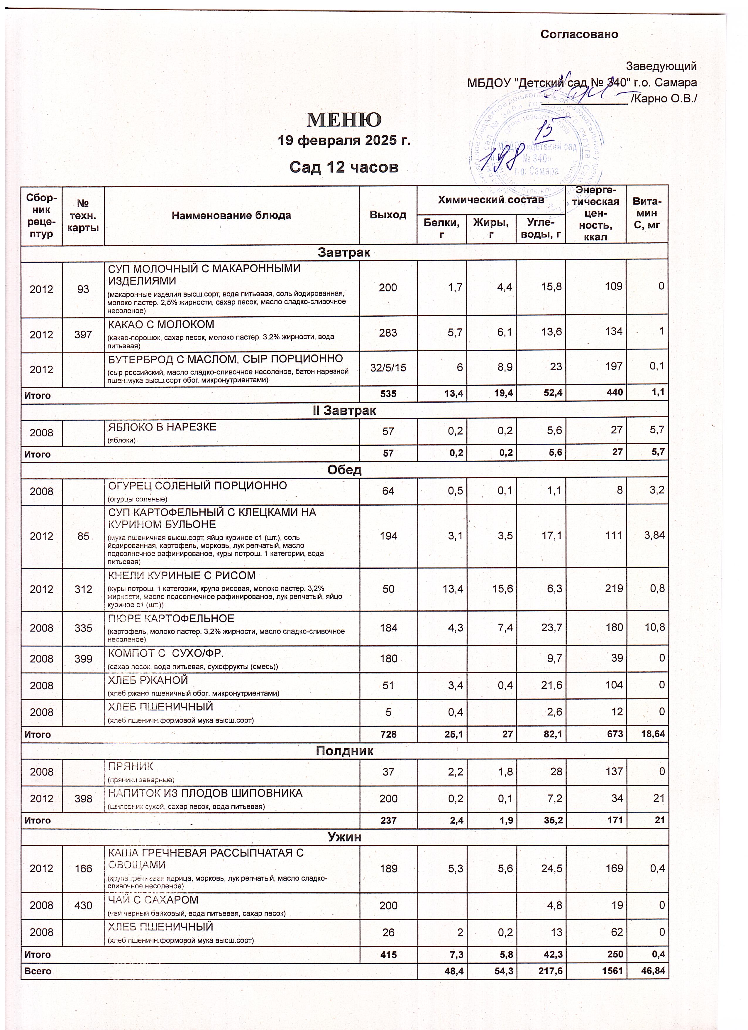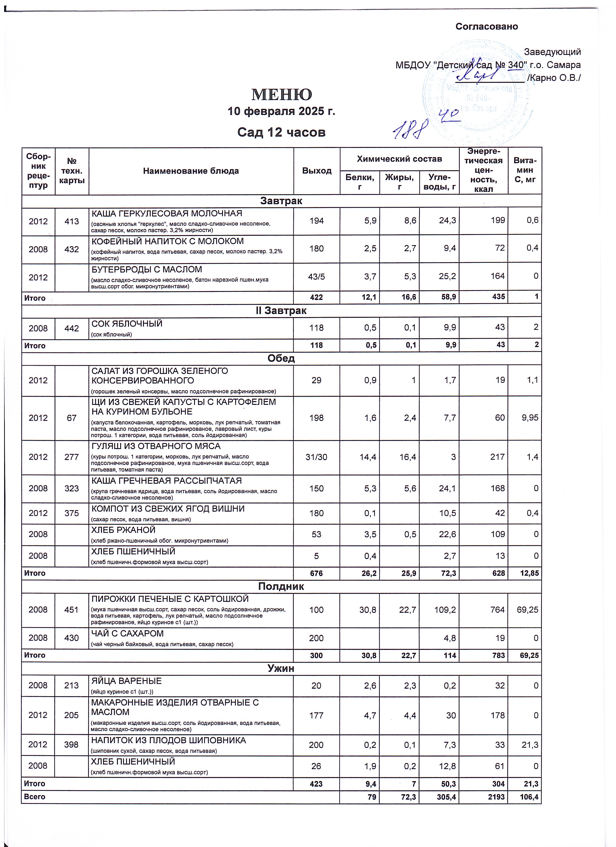 Актуальное утвержденное меню