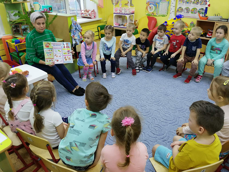 - Занятия и беседы с детьми на темы: «Овощи, ягоды и фрукты- самые витаминные продукты», «Знатоки овощей и фруктов», «Здоровая пища». Придумай рассказ на тему: «Как овощи и фрукты о своей пользе спорили»